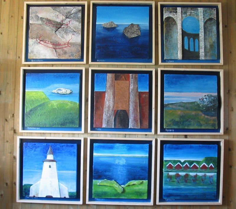 Zweden heeft op veel mensen een grote aantrekkingskracht. Dit land is ook een van de inspiratiebronnen van Anna G. Kool-Troost. Zo is er o.a. het negenluik te zien; 9 bij elkaar horende schilderijen die een verslag zijn van een van de vele zeilreizen naar de Zweedse oostkust. Op ieder schilderij is een voorwerp aangebracht dat meestal afkomstig is uit Zweden.