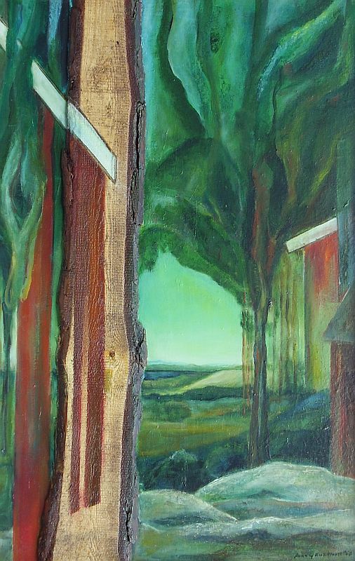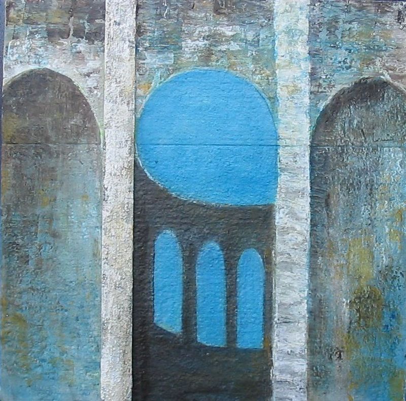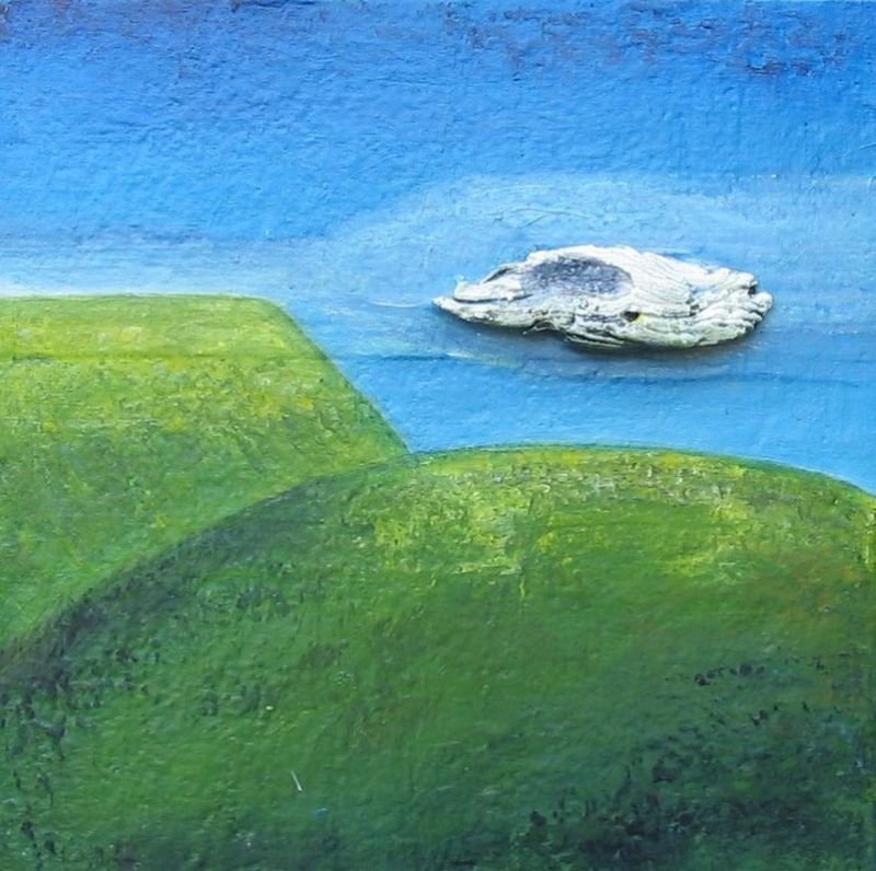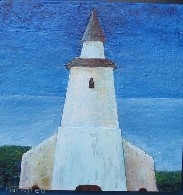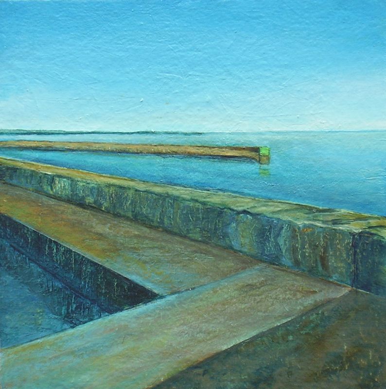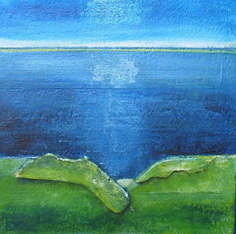 Anna werkt met acryl en gemengde techniek op paneel. Zij schildert niet realistisch, maar het getoonde is zeker herkenbaar en zal velen aanspreken.