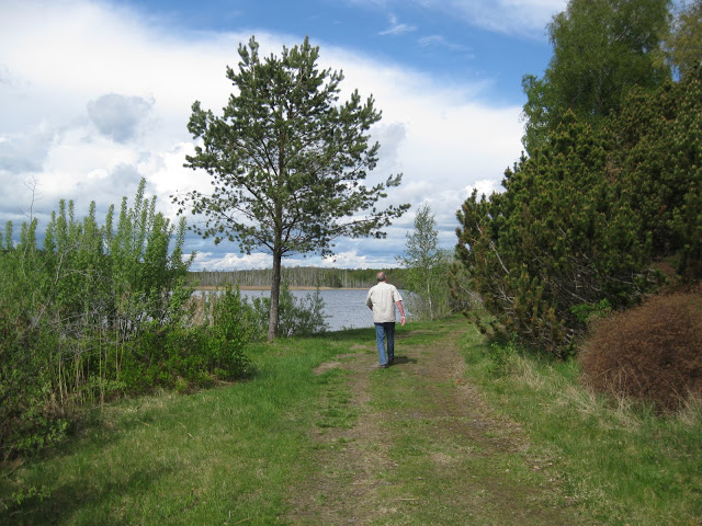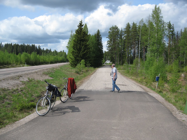 We willen deze vakantie “ontspannen”, zoals onze oudste zoon dat placht uit te drukken. Vanmorgen lukt dat aardig, want we worden pas om half elf een keer wakker. Het ontbijt wordt daarmee automatisch de brunch. Na een avond en nacht doorlopend regen en harde wind blijkt het nu zonnig en droog. Warm is anders, maar na gisteren neem je overal genoegen mee. De “campingdame” komt vertellen dat na lang sleutelwerk en het opnieuw installeren van een oud modem er nu wel verbinding is met het wereldwijde web. Jenny huppelt derhalve na de brunch voorzien van laptop richting kantoor / kantine. Maar: ook nu lukt het niet om in te voegen op de digitale snelweg. De “campingheer” doorvorst onze laptop en kennelijk is er iets (lan) uitgeschakeld, waardoor de “gewone” kabelverbinding het niet deed. Zal wel gebeurd zijn tijdens de installatie van onze / Paul ’s externe “antenne voor zwakke wifi” die we nu bij ons hebben. Nadat dit verholpen is surft Jenny er op los en doet zelfs nog een BB- boeking. Business as usual…. Later dan gepland, in de loop van de middag, vertrekken we op de fiets naar Ekshärad, een ruim 14 kilometer zuidwaarts gelegen dorp waar de enige fatsoenlijke supermarkten in de omgeving zijn. Fietsen over doorgaande wegen in Zweden is niet gevaarlijk; automobilisten passeren je keurig half of geheel op de linker rijbaan en als er tegenliggers komen wachten ze vaak netjes achter je tot die voorbij zijn. Maar je moet dan wel achter elkaar fietsen en dat is minder gezellig. We ontdekken na enige tijd de “oude” Weg 62 die slingerend naast zijn nieuwe broertje loopt en als toegangsweg voor een paar huizen wordt gebruikt. Dat fietst een stuk gezelliger. Soms houdt ‘ie even op en moeten we de “snelle” weg gebruiken. Een paar kilometer voor het einddoel voelt Nico ineens de oneffenheden in het wegdek wel èrg duidelijk via zijn zadel (dat zelfs nog geveerd is). Ja hoor: een lekke band! De eerste in al onze vakantie(s). Beetje eigen schuld, want vóór de vakantie vertoonde de achterband al een vreemd uitstulping, die thuis na leeglopen en weer oppompen van de binnenband bijna verdwenen was, maar nu toch weer “de kop op stak”. Precies op die plek is er nu dus een lek. Het eerste gaatje in de nog originele binnenband van 9 jaar geleden met Frans ventiel. Lastiger is het dat je een remblok moet demonteren om de binnenband fatsoenlijk te kunnen nakijken. Uiteindelijk is het lek geplakt, de band weer gemonteerd en zelfs het remblok weer op zijn plek teruggeplaatst, waarna de laatste kilometers naar Ekshärad worden afgelegd. Na de boodschappen in de plaatselijke ICA lessen we onze dorst op een bankje bij de kerk en begint de terugtocht. We zien donkere wolken samentrekken boven de plek waar we heen moeten en de laatste kilometers worden dan ook in een regen- en hagelbui afgelegd. Op één dag zon, regen, hagel en storm; zoiets heet een gevarieerd weerbeeld. Van ons had het best saai mogen zijn: met zonnig, 20 graden en droog waren we ook tevreden geweest. Na terugkeer bij de camper krijgen we in korte tijd weer alle weerbeelden achter elkaar, inclusief regenboog en rond half negen zitten we uiteindelijk even buiten aan de koffie in een laagstaand zonnetje onder een strakblauwe hemel, terwijl om ons heen de “Witte Wieven” verschijnen. Bij elke ademtocht stoten we wolkjes uit, zo fris is het, maar: we zitten in de zon! Tijdens onze tijdelijke verbinding met de digitale buitenwereld vanmiddag zagen we dat het morgen vermoedelijk wel droog zal zijn. Afwachten maar. We breken in ieder geval morgen op om verder Noordwaarts te gaan. Op dit moment (21.50 u.) is het buiten 8 graden; Zomervakantie………. J. Deze dag hebben we 32 kilometer gefietst.