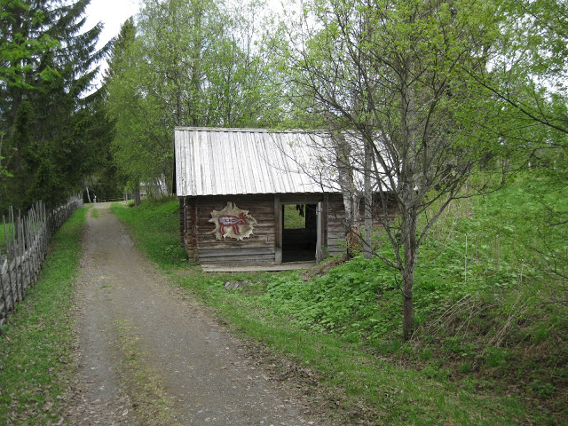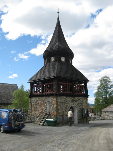 De wekker loopt om 8 uur af. Vannacht heeft het nogal vaak geregend, maar nu is het droog. De luifel is nog een beetje nat, die gaat deze keer dus niet droog mee. Om kwart voor tien verlaten we Camping Östersund en volgen de borden richting E14. We komen prompt weer bij de rotonde waar we zaterdag de E14 verlieten en dus ook weer bij het mega- grote winkelcentrum. Ook nu doen we boodschappen met een zo klein mogelijke winkelwagen, want echt veel hebben we niet nodig. In navolging van zaterdag kopen we nu het “dure” brood, dus niet de “Langfranska” of de “Barkis” van 10 Kronen, maar brood dat 2 keer zo duur is. Dat blijkt namelijk veel langer vers en lekker te blijven, dus gooi je ook minder weg. Na gedane inkopen verlaten we dan uiteindelijk Östersund en rijden richting Trondheim. Een eindje buiten Östersund verlaten we de E1 bij Vaplan en rijden een stuk noordwestelijk over binnenwegen naar een plek waar volgens de kaart rotstekeningen (“Hällristningar”) moeten zijn. Na verloop van tijd komen we bij de parkeerplaats en lopen op een pad naar een beekje waar de rotstekeningen zijn. Onderweg passeren we een plek waar kennis over de omgeving kan worden opgedaan, want een grote groep kinderen van alle leeftijden en volwassenen (die het grote aantal auto’s op de parkeerplaats verklaren) zijn op een weide druk met allerlei dingen bezig. We lopen nog even een hut binnen waar het vergeven is van de elanden- en rendierhoeven met bijbehorende pootdelen. We bekijken daarna de rotstekeningen en proberen een stukje wandelpad te volgen, maar onze conditie is kennelijk een stuk minder dan tijdens de beklimming van de Preikestolen” twee jaar geleden. We keren dus maar weer terug naar de beschaving en komen via mooie binnenwegen weer op de E14 terug. Het is inmiddels zonnig geworden met zo nu en dan een wolk voor de zon, maar we zijn deze vakantie al met weinig tevreden. Zo lang het maar droog is! In Järpe gaan we tanken en ons rustige rijden wordt beloond met een verbruik van 1: 13,85, bijna 1:14 dus. En dat is best wel handig met de Scandinavische dieselprijzen. In het wintersportdorp Åre stoppen we bij een kerkje uit de 12e eeuw. Na het traditionele rammelen aan de gesloten deur en het obligate rondje om de kerk (“waar zit toch die ingang?”) komen we weer bij de enige deur en zien op een bordje met openingstijden van 8.00 tot 20.00 uur een grote smeedijzeren sleutel hangen, waarmee je de deur kunt openmaken. Mooi interieur! We lunchen bij de kerk en gaan daarna verder richting Noorwegen. Vlak voor de grens zien we rendieren langs de weg lopen. Om drie uur rijden we met 15 graden en een lekker zonnetje de grens met Noorwegen over.